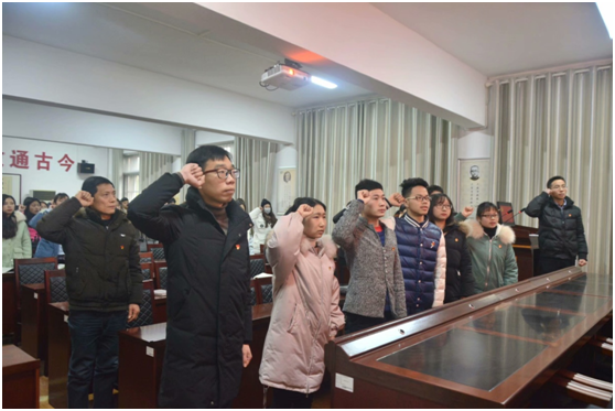 (通讯员 万典 朱佐民/文 朱佐民/摄)1月4日上午9:00,浦京集团官网在东校区8教406举行了庄严而神圣的接收新党员暨入党宣誓大会。浦京集团官网党委书记高迎斌、党委副书记袁海山、学生党支部书记严星和兼职辅导员林香亮参与本次大会。全体入党积极分子、发展对象和全体党员同志到会。会议由袁书记主持。