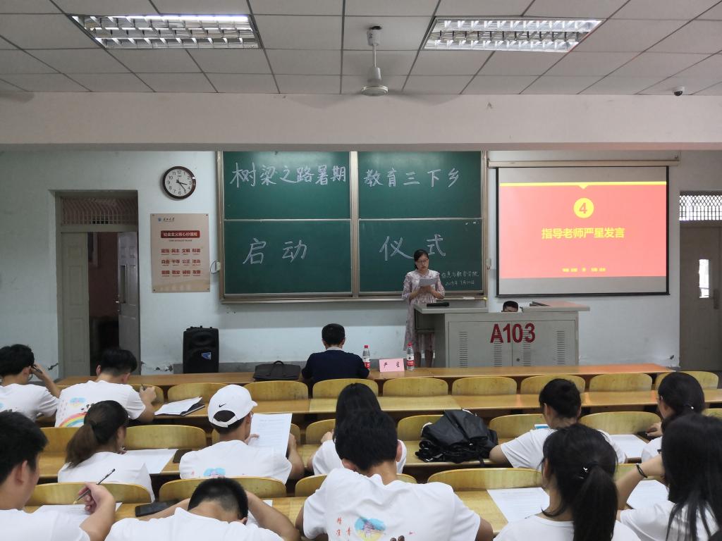 在大会中严星老师就安全问题进行了着重强调和提醒。她强调无论是在学生安全、水电安全、出行安全、食宿安全还是一些细节上的安全隐患一样都不可被忽视,如遇安全问题要机智处理,并通知相关领导和学院。同时她就支教过程中的注意事项一一进行了阐述。
