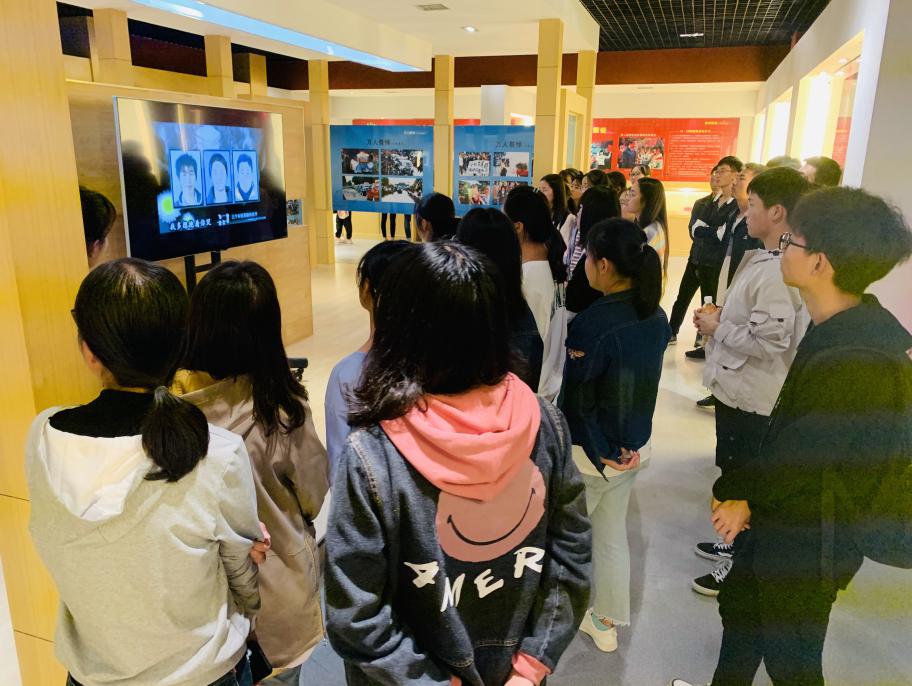 在学生志愿讲解员的带领下,同学们先后了解了“10·24”事件:15位英雄们结成“人链”英勇施救落水少年的感人事迹,不幸的是,陈及时、何东旭和方招三位“90”后大学生英勇献身……同学们怀揣崇高的敬意参观了三位英雄的遗物,并了解英雄们的生前事迹,斯人已逝,但每位同学都明白:英雄不朽,精神不灭!