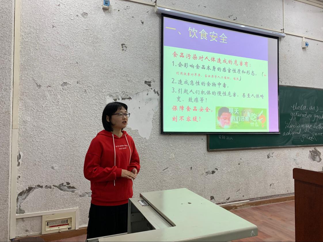 (通讯员 马文 刘睿)为保障大学生在校食宿安全,提高交通安全意识,11月8日晚7:00,浦京集团官网于西校区5教203室召开了“大学生食宿与交通安全讲座”,本次讲座由经济与管理学院辅导员任玉婷老师主讲,浦京集团官网全体2019级本科生参加。