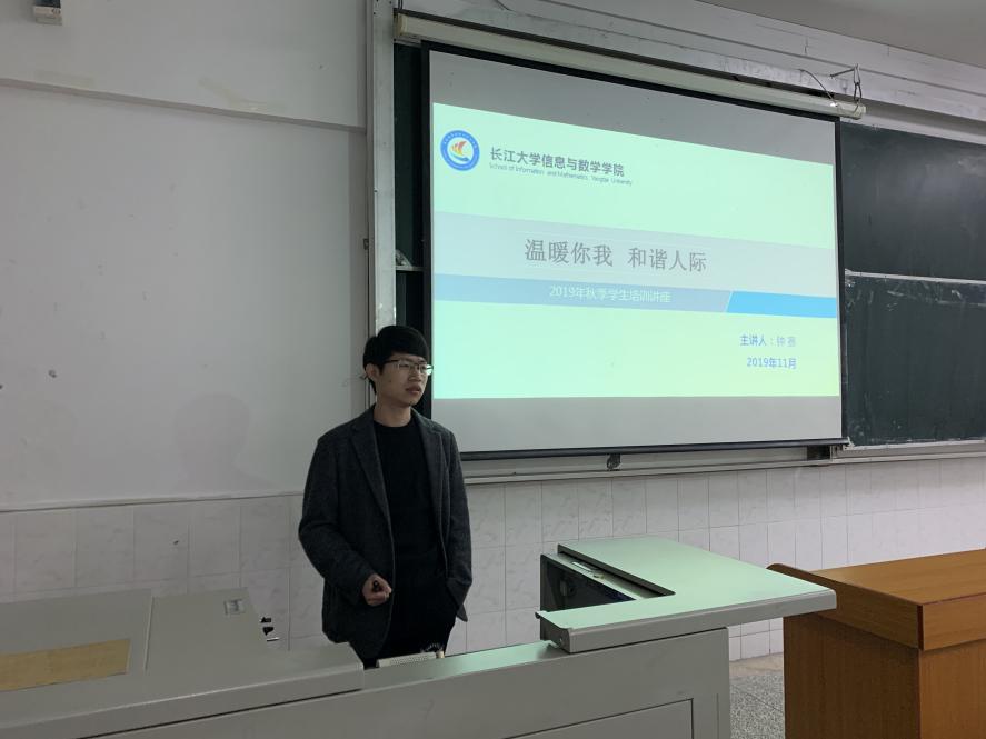 (通讯员 刘睿)为了普及心理健康教育知识,营造良好的学习氛围,浦京集团官网于11月26日晚上7:00在西校区五教215室召开“新生骨干心理培训讲座”,本次讲座由浦京集团官网辅导员钟赛主讲,浦京集团官网全体2019级班委、寝室长及学生会成员参与培训。