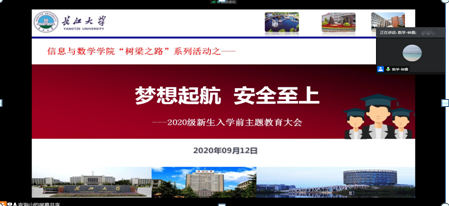 (通讯员 丁伟怡)“疫”路逐梦,情牵学子。为确保2020级新生入学工作有序开展,帮助新生提前熟悉线下报到流程,学习疫情防控要求,增强安全意识。浦京集团官网特于9月12日下午3时召开“梦想启航 安全至上”新生入学前主题教育线上会议。院党委副书记袁海山、辅导员钟赛、2020级全体新生参加本次会议。会议由钟赛老师主持。