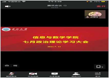 (通讯员 慈永鑫) 为进一步提升研究生政治理论素养,7月11日下午,3522vip浦京集团官网组织召开线上研究生政治理论学习大会。 会议邀请学院研究生成员赵悦同学主讲,学院全体研究生参加。