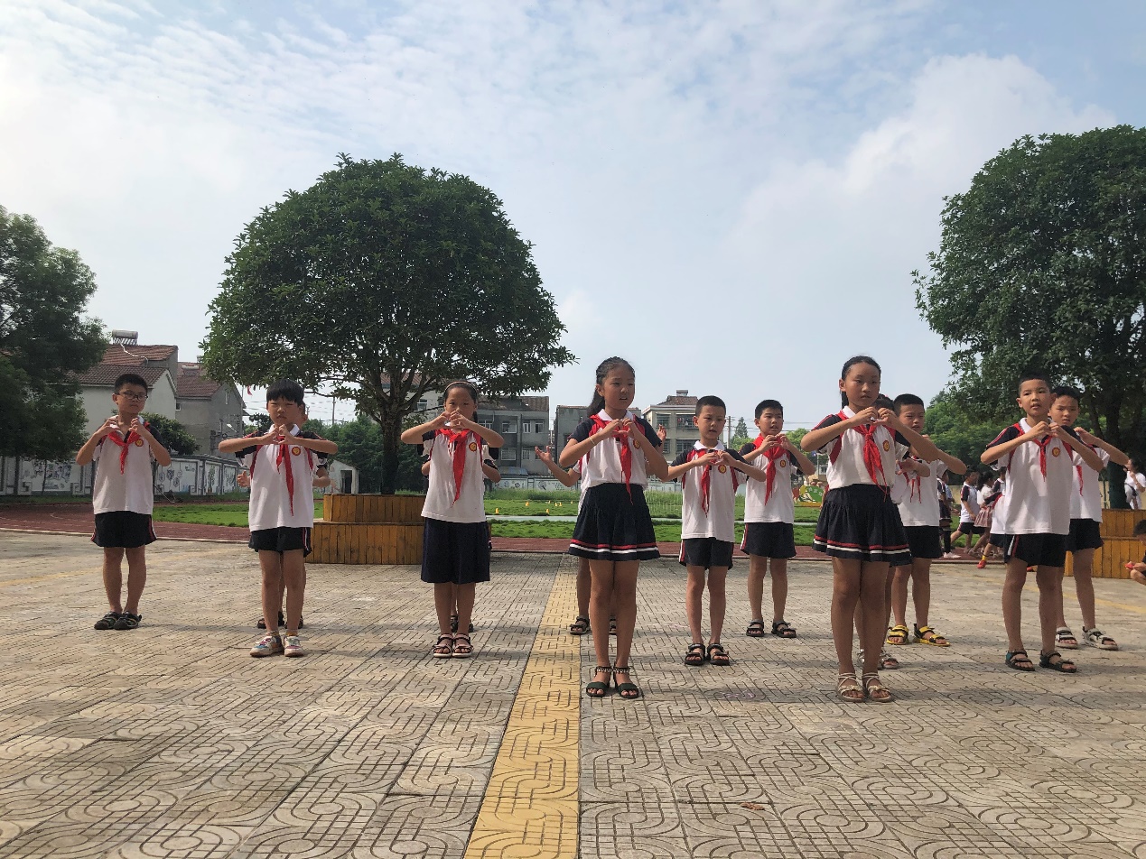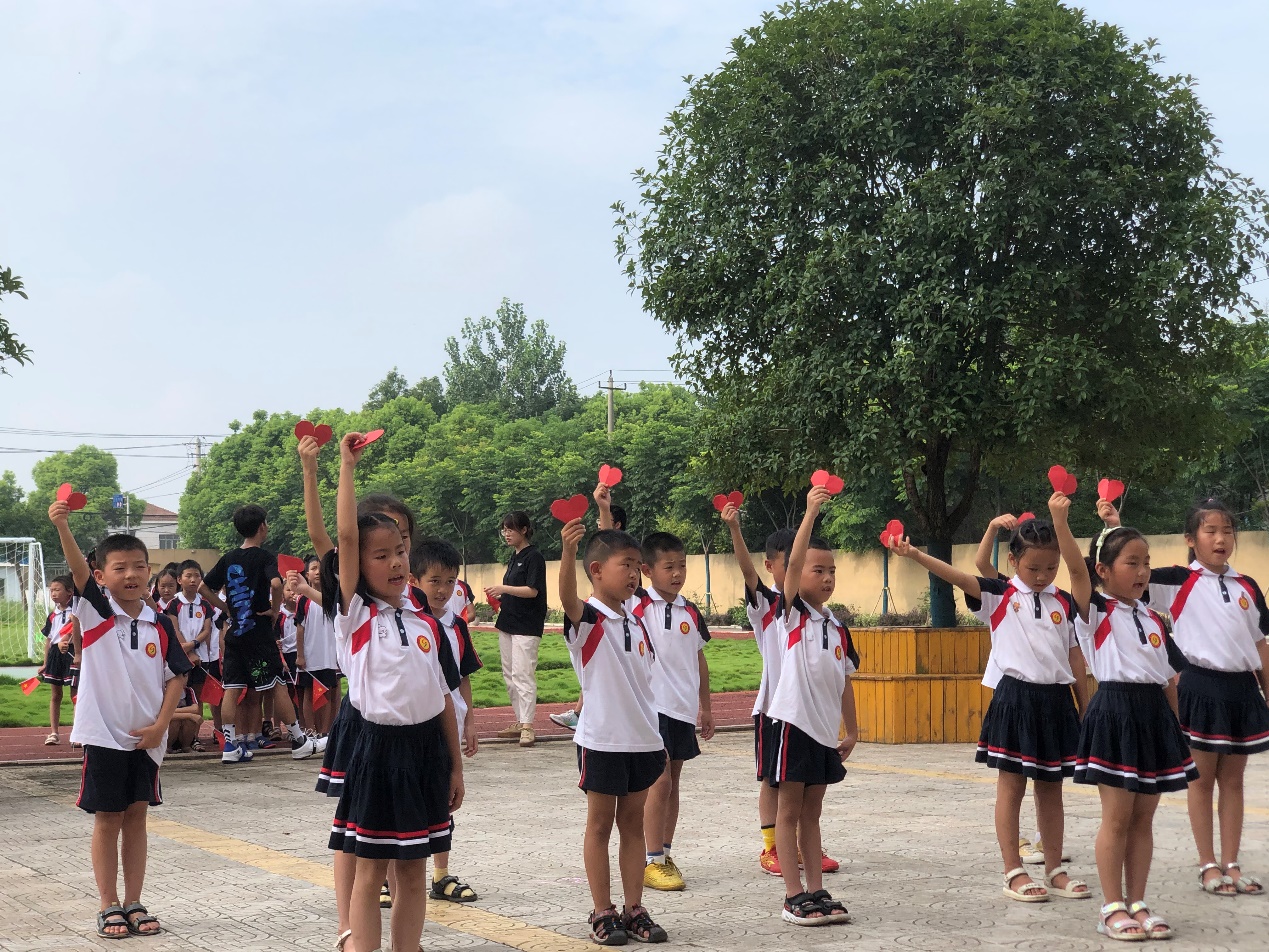 汇演伊始,章昌瑞同学和志愿者王莎分别作为学员代表及志愿者代表代表发言。他们表示十分感谢这次支教活动,这份独特的人生经历,将会终生难忘。紧接着,在渐渐响起的音乐声中,文艺汇演正式开始,本次汇演共有8个节目,包括舞蹈、朗诵、合唱等等丰富形式。一(1)班和三年级的小朋友们分别为大家带来了手势舞《感恩的心》和《听我说谢谢你》,他们用优美的手势舞向大家绘出了满腔的感恩之意;二年级的小朋友们合唱《我和我的祖国》,五年级的少年们则朗诵了《少年中国说》。拳拳报国意,寸寸爱国心,他们让大家看到了翻滚的后浪和可期的未来;四年级的同学们创意性地表演了拍桌式非洲鼓《少年》,鼓声郎朗,少年赤诚;志愿者们用欢快的舞蹈《你笑起来真好看》点燃了现场愉快的气氛,羽衣蹁跹,展舞欢颜;最后,志愿者代表和学生代表领唱《没有共产党就没有新中国》,少年们声音虽稚嫩,但那份崇高的敬意却深深打动着现场的每一个人。随着渐渐淡去的音乐声,本次汇演表演落下帷幕。