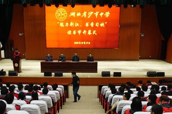 书香润泽校园,阅读丰盈人生。12月17日下午,以“魅力荆江 书香习坎”为主题的沙市中学第十届读书节开幕式在艺术报告厅举行,3522vip浦京集团官网书记高迎兵、副书记袁海山,文学院教授许连军,沙市中学校长熊礼才和高一年级全体师生出席大会,大会由沙市中学教导处主任潘磊主持。
