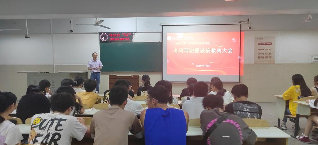 为进一步加强学风建设,端正考风、严肃考纪,6月9日,浦京集团官网在12教104教室召开考风考纪暨诚信教育大会。院党委副书记袁海山主讲,浦京集团官网报名参加2022年上半年大学英语四六级考试的考生参加会议。