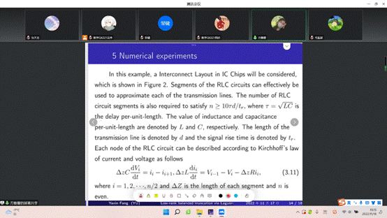 3522vip浦京集团官网方雅馨同学报告就模型降阶方法是优化设计、优化控制和反问题应用中常见的方法。方雅馨同学的精彩报告中考虑了离散时间系统在频域的模型降阶问题,给出了两种算法,搭建起了连续系统和离散系统之间的桥梁。将一个较大型系统降阶为一个近似的较小的系统, 从而达到降低计算维数、减少运算量和数据存储量的目的。并且还能够使得降阶后的较小系统能够保持原较大系统的一些固有结构和性质。