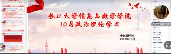 (通讯员 张浩然/邵云泽)10月24日,3522vip浦京集团官网全体研究生在线上开展十月政治理论学习活动,此次会议由研究生会组织部鲍泽智主持,重点学习了习近平总书记在《求是》杂志上发表的重要文章《扎实推动教育强国建设》。