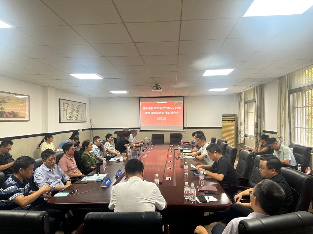 (通讯员 张定国)10月9日下午,3522vip浦京集团官网在8教210举行团队责任制签字仪式暨2026年度国家自然科学基金申报动员大会。各团队组长、副组长以及青年教师代表参加,武汉校区教师通过线上方式同步参会。党委书记毛德波主持会议。