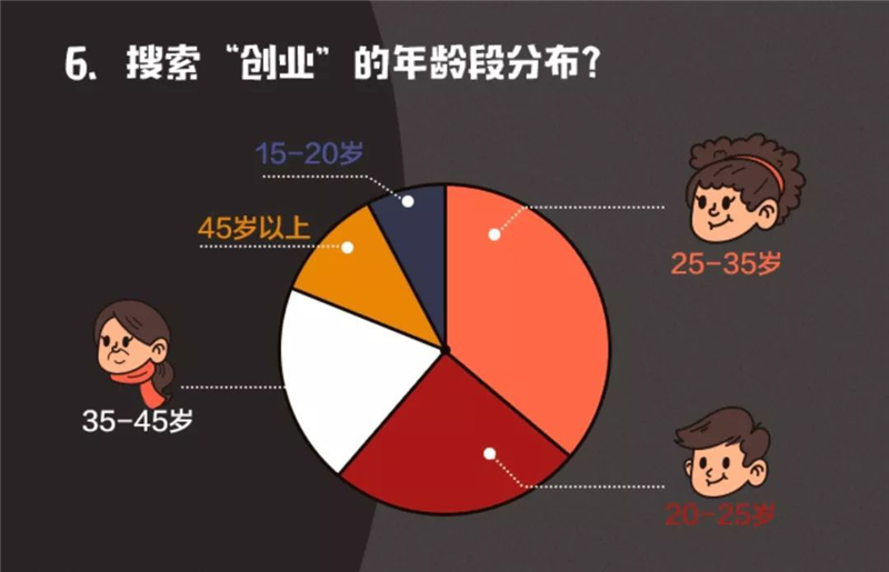 与此同时,创业者呈现出低龄化趋势。《报告》显示,最关注创业的人群年龄段集中在25岁到35岁,其次是20-25岁。年轻人群的创新能力及勇气,往往会给创业带来更多的可能性。有专家认为一方面因为“赚钱”并非年轻人创业的首要驱动力,而是“自由的工作生活方式”,这样的话更容易全身心投入,事情更容易做好。其次风投最喜欢投资的CEO年龄在30-35岁之间,往上可以加5岁(尤其是To B的业务),往下可以减5岁(尤其是To C的业务)。