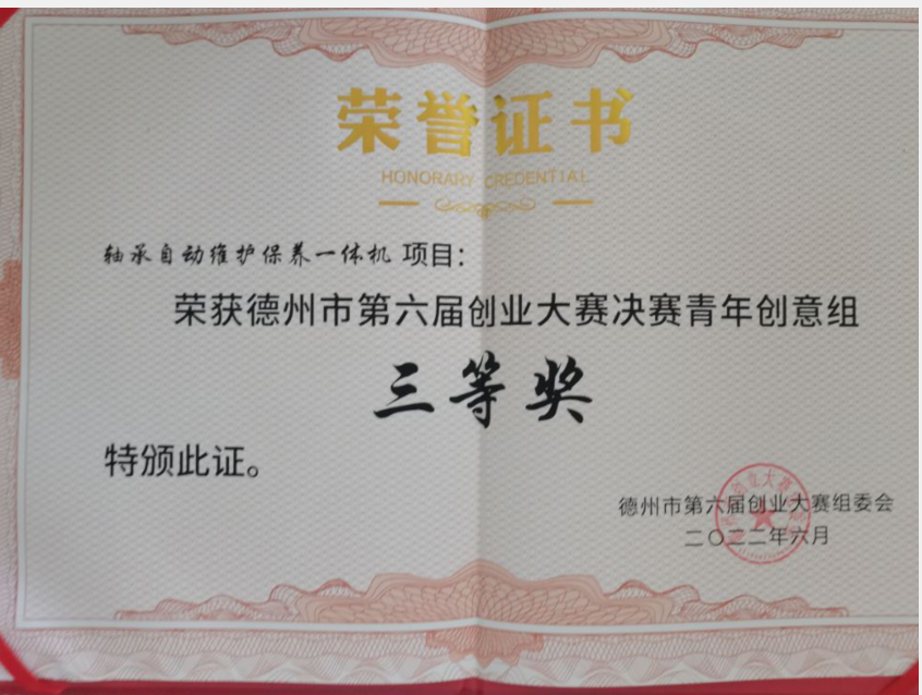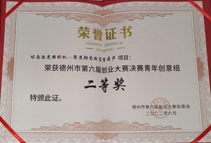 6月9日,德州市第六届创业大赛决赛在德州市人力资源市场主楼三楼会议室举行,经过激烈角逐,永利集团官网《球面激光雕刻机—聚焦助农致富宝葫芦》项目以第二名的成绩获得青年创意组二等奖,《轴承自动维护保养一体机》项目以第4名的成绩获得三等奖。此外,德州市人民政府常务副市长与永利集团官网学生亲切交谈并对获奖项目给予肯定。